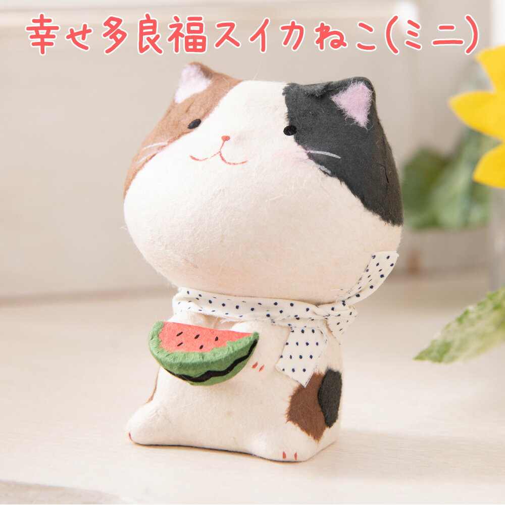 ●招猫 置物 縁起飾り チギリ和紙(新)幸せ多良福スイカねこ(ミニ)●品番:6-619ブランド:リュウコドウ(龍虎堂)京都人形工房使用時期:新築 開店 店舗 オープン 移転 入学 退職 転勤用途:商売繁盛 金運 商売繁盛 千客万来 笑門来福 健康長寿 無病息災 学業成就 恋愛 開店祝い プレゼント 記念品 インテリア置物 風水グッズ 海外土産 ギフト素材:和紙生産国:日本製付属:招き猫サイズ(cm):約 幅7/奥行6/高さ9商品特徴:ちぎり和紙がほっこり和む和ぐるみです。