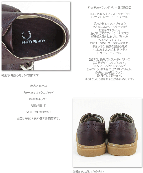 フレッドペリー Fred Perry シューズ ローカット スニーカー デイビス レザー ブローグ ウイングチップ 本革レザー 革 メンズ 父の日